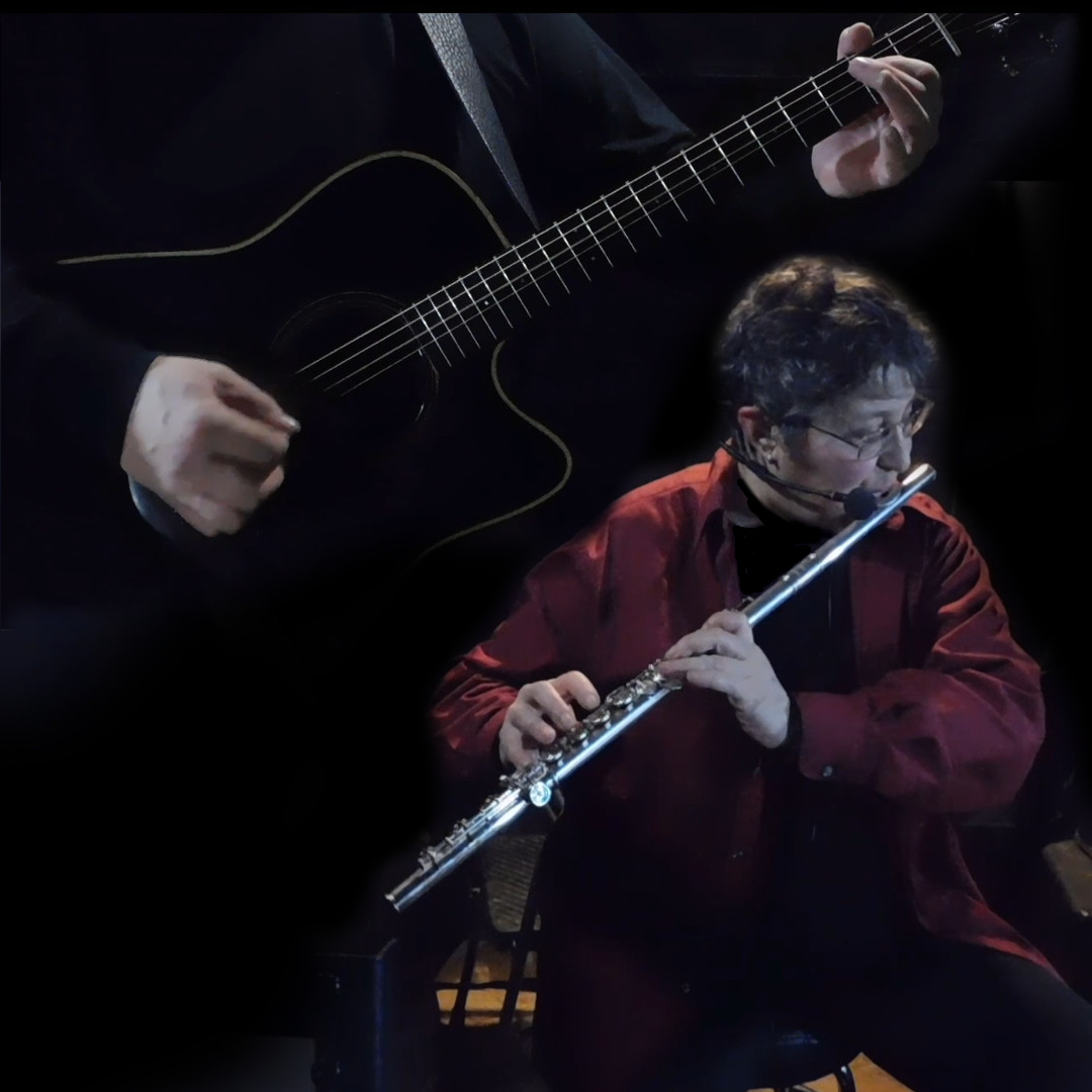 Because it’s rock, we keep it strictly in time to its intended tempo, recording under headphones to a click track …which makes it a bit of a trick, because intonation (staying on pitch) on the flute requires subtle adjustments, note by note on the fly …which requires both ears listening. To complicate things, the flute has delay (sometimes called echo) on it in places, and, later, both the guitar and the flute are under heavy distortion, the guitar chunky, the flute gritty and reedy. For me, this makes performing it a careful thing, because I must compensate accordingly for the signal lag that happens to the flute under distortion patches.