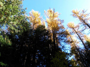 Got a wonderful blast of sunshine yesterday. It was an absolutely glorious autumn day. Today? We’re back to much-needed rain. Enjoy. The first is a still-green maple sapling, the second is one of our century-old-plus cedars, the third is a shot of the also century-old tamaracks (larch) turned their wonderful autumn color just before they lose their needles. (Yes, they are one of the few pines that lose their needles every fall, so, those of you unfamiliar with them, don’t cut that tree that’s bare if its a larch, because, yes, it drops its leaves in the fall.)