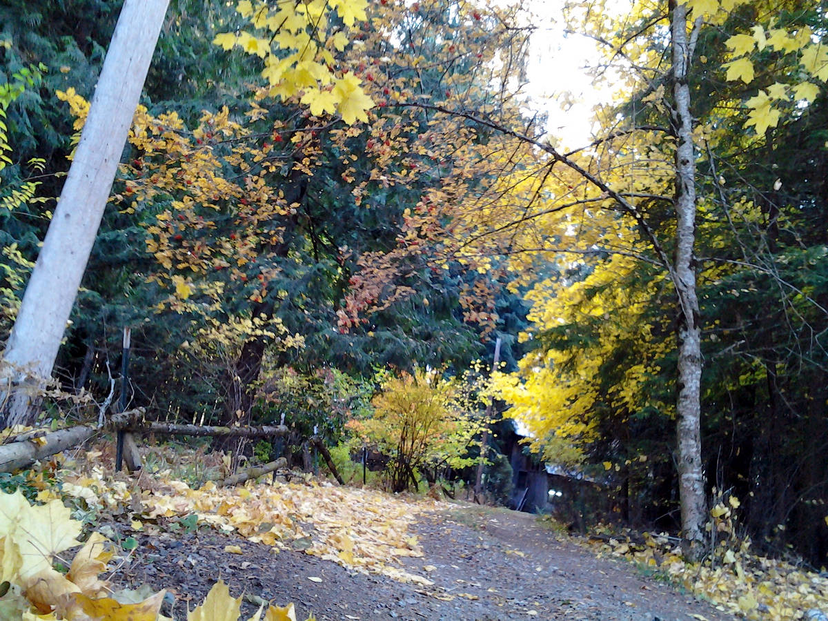 Our October this year didn’t start in gravy. There was a cold foreboding to the weather that promised a very cold, hard winter. Everybody felt it. Then, midway through, things changed. And we got, not Indian Summer, but Gravy Days, all the same. Last fall clean-ups in pleasant progress and, yes, finally, the roofing crew, promised in Spring, here two days before the rains come.
